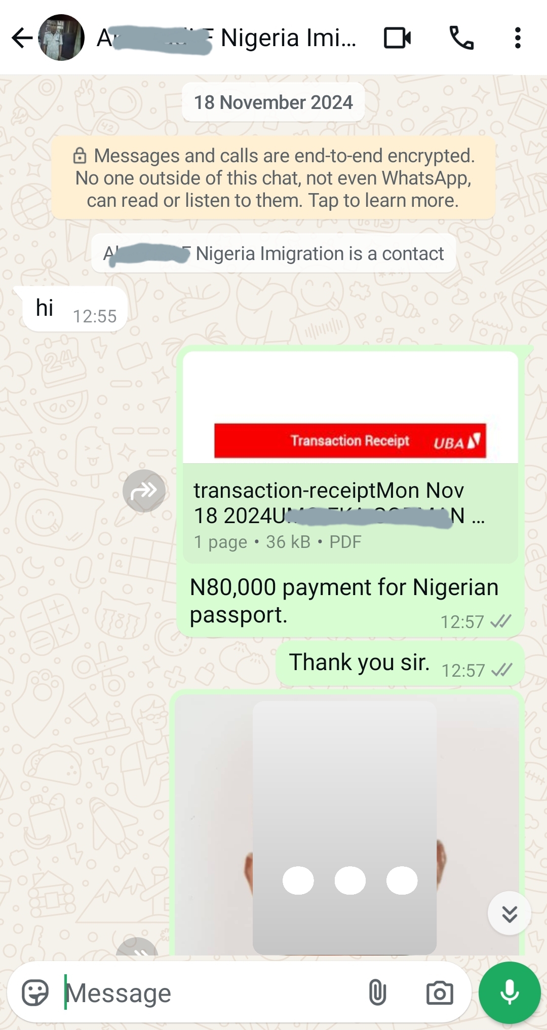 I wanted to attend a science seminar in China on fission energy in January 2025 but, uptill November 2024 I had no Nigerian passport that could enable me to apply for the Chinese visa, so I went straight to the Nigerian Immigration Office, opposite Ikeja City Mall or Shoprite, Alausa, Ikeja, Lagos. There, I met an officer in uniform at the entrance, who enquire what I wanted to do, and later laid me upstairs to collect my details. I then inquire about the cost, which he responded with N70,000. I argued with him because, I was aware of the official cost (N50,000) of a 32 pages passport, with a 5 years validity, but he explained that, the addition N20,000 was his supervisory charges, which everyone know about according to him, he went further to inform me that there's an additional N20,000 fast-tracking fee that I could pay to get my passport within 3 weeks with a total cost of N90,000 only. And that his suggestion immediately got my attention because I was running out of time. So, I pleaded with him to take N70,000 with the fast-tracking and every other thing inclusive and he reluctantly agreed. And since this was no more official dealings, he offered me his personal Opay account and I instantly transferred him N70,000 even though he was open to accepting even N60,000 and the N10,000 balance after my passport is out. I wasn't really scared because he was in uniform.